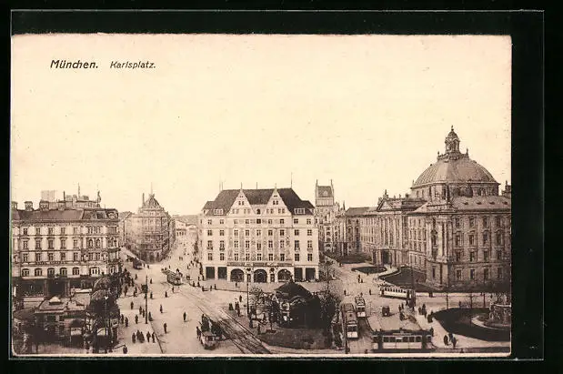 AK München, Karlsplatz aus der Vogelschau, Strassenbahn