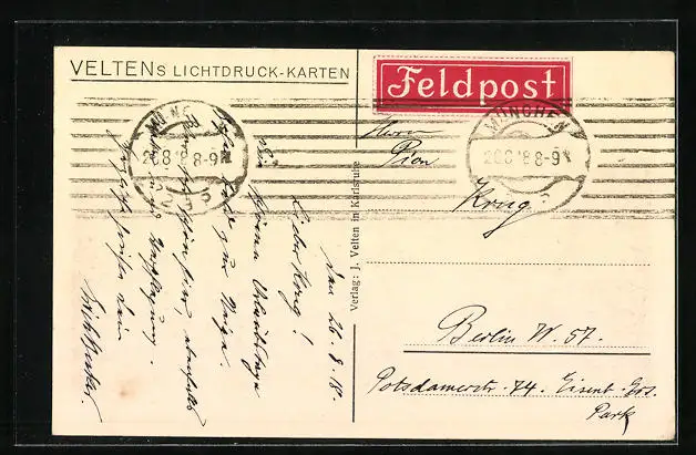 alte Ansichtskarte, gelaufen, Stempelspur, guter Zustand