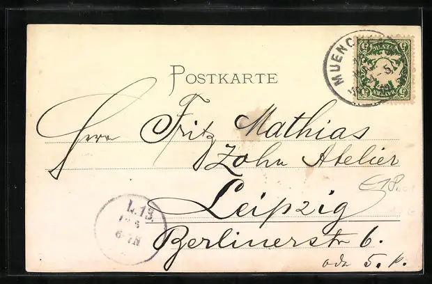alte Ansichtskarte, gelaufen, Stempelspur, guter Zustand