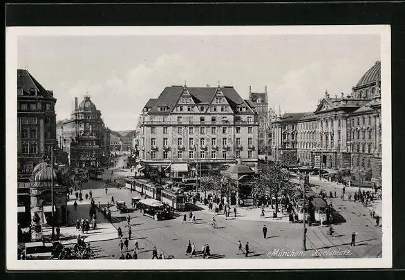 AK München, Karlsplatz mit Geschäften und Strassenbahn