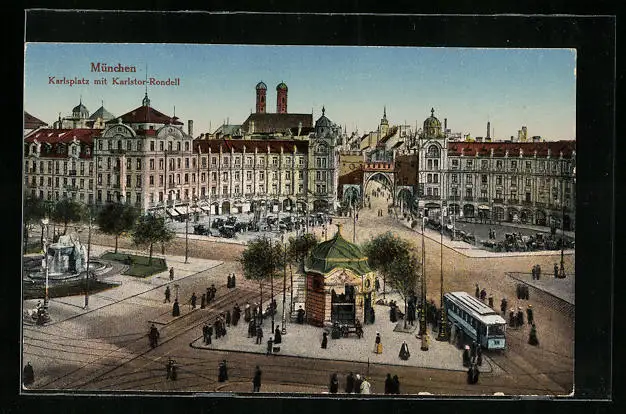 AK München, Karlsplatz mit Karlstor-Rondell und Strassenbahn