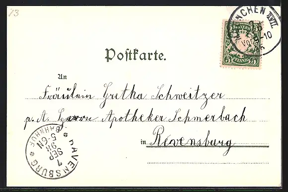 alte Ansichtskarte, gelaufen 1898, guter Zustand