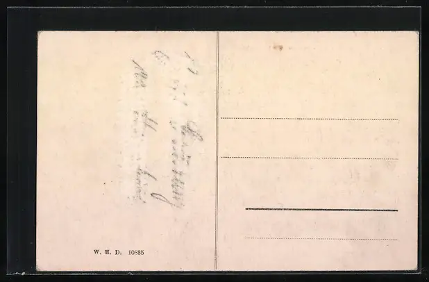 Personenbezogene Daten auf der Rückseite der Karte wurden durch blauen Textmarker unkenntlich gemacht. Die blauen Stellen sind auf die Vorderseite durchgeweicht und wirken sich negativ auf das Postkartenfoto aus