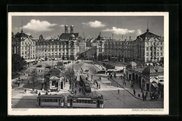AK München, Karlsplatzrondell mit Strassenbahn