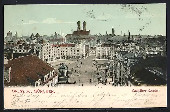 AK München, Karlsthor-Rondell aus der Vogelschau