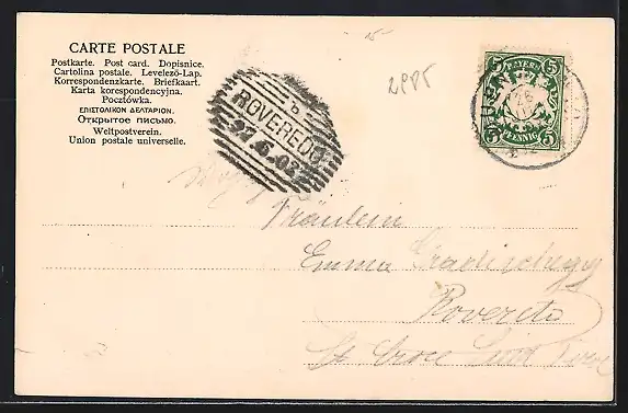 alte Ansichtskarte, gelaufen 1902, Stempelspur, guter Zustand