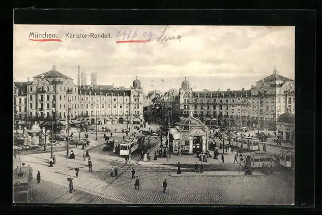 AK München, Karlstor-Rondell mit Strassenbahnen