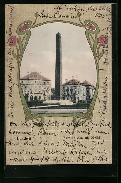 AK München, Karolinenplatz mit Obelisk
