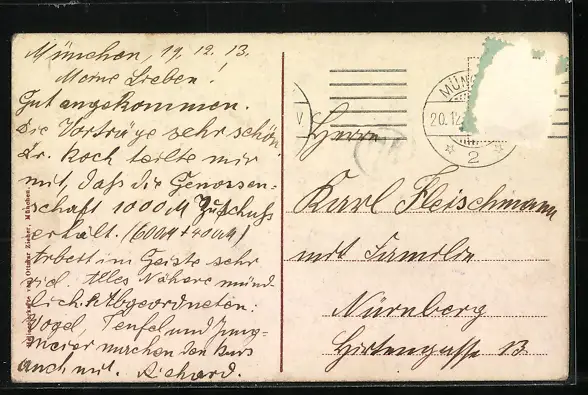alte Ansichtskarte, gelaufen 1913, Briefmarke entfernt, rückseitig Oberflächenschaden, guter Zustand