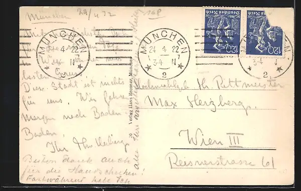 gelaufen 1922, Briefmarke entfernt, guter Zustand