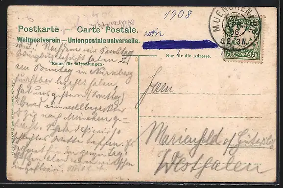 alte Ansichtskarte, gelaufen 1908, guter Zustand