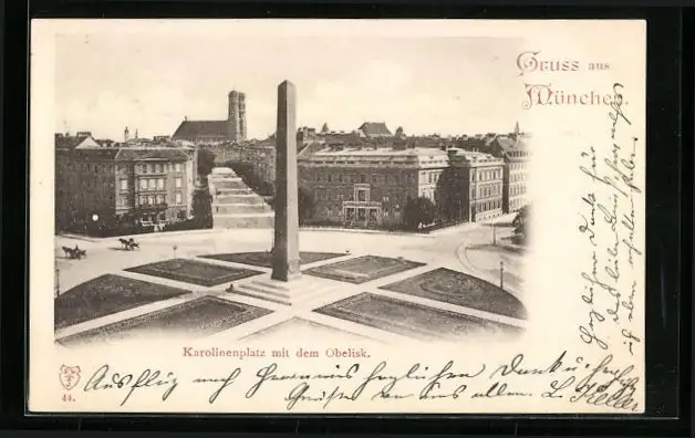 AK München, Karolinenplatz mit dem Obelisk