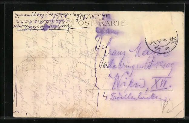 alte Ansichtskarte, gelaufen 1914, Briefmarke entfernt, guter Zustand