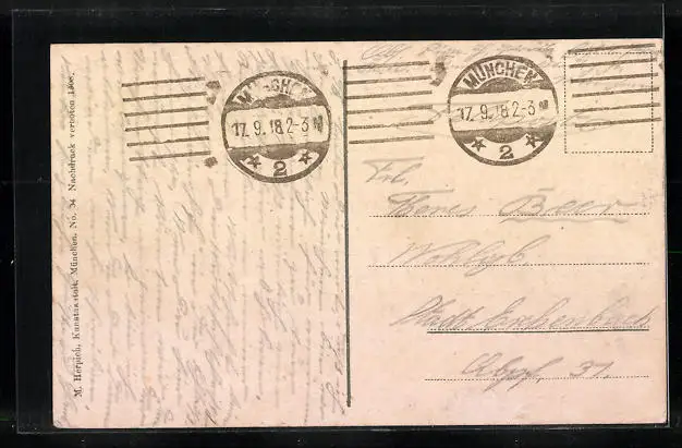 alte Ansichtskarte, gelaufen als Feldpost 1918, Stempelspur, guter Zustand