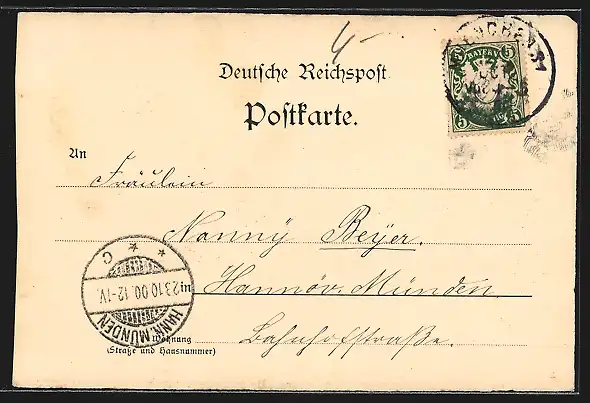 alte Ansichtskarte, gelaufen 1900, Stempelspur, guter Zustand