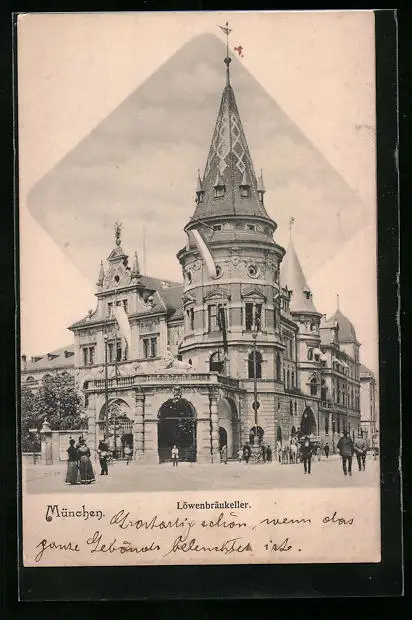 AK München, Löwenbräu-Keller, Aussenansicht mit Gästen