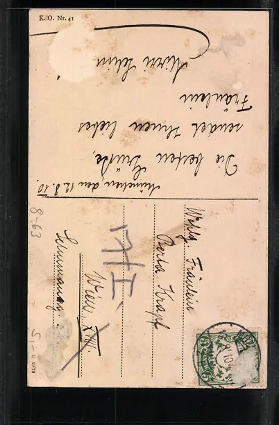 gelaufen 1910, rückseitig Klebe- und Papierreste, rückseitig Oberflächenschaden, guter Zustand