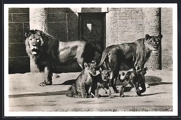 AK München, Löwenfamilie im Tierpark Hellabrunn