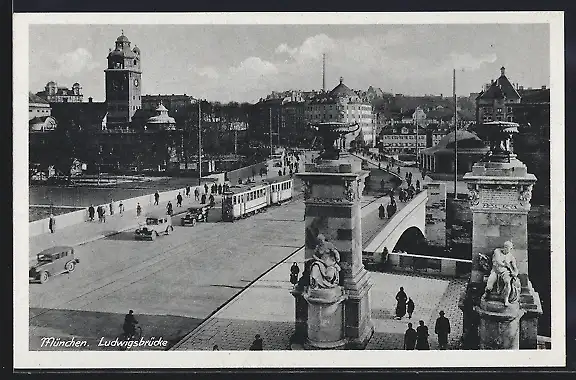 AK München, Ludwigsbrücke, Strassenbahn