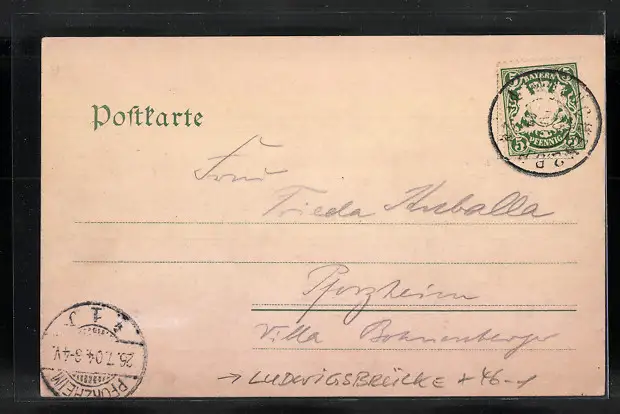 gelaufen 1904, Eckknick re. oben, Stempelspur, guter Zustand