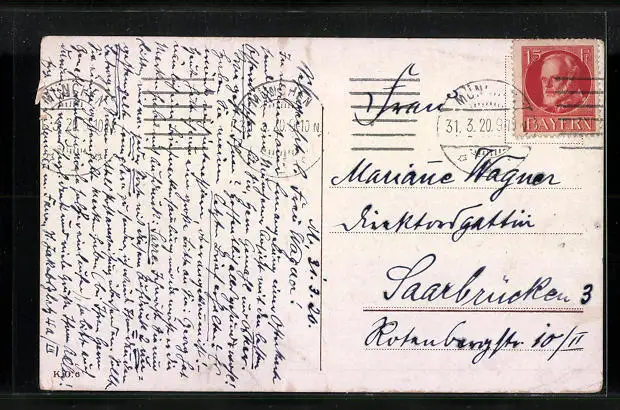 alte Ansichtskarte, gelaufen 1920, Eckknick oben links, Einriss rechts, guter Zustand