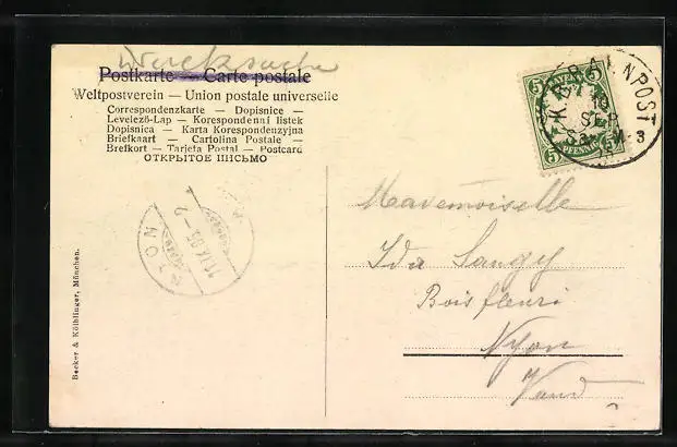 alte Ansichtskarte, gelaufen 1905, Stempelspur, guter Zustand