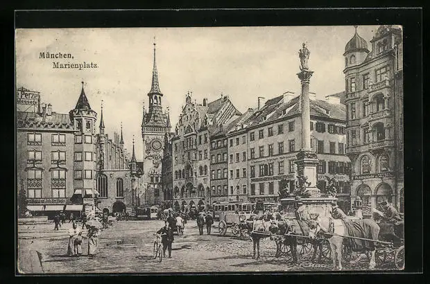 AK München, Marienplatz mit Strassenbahn