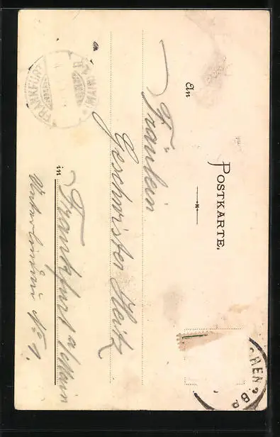 alte Ansichtskarte, gelaufen, Briefmarke entfernt, rückseitig Klebe- und Papierreste, rückseitig Oberflächenschaden, guter Zustand