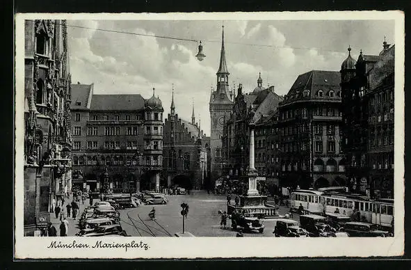 AK München, Marienplatz mit Strassenbahn, Kirche