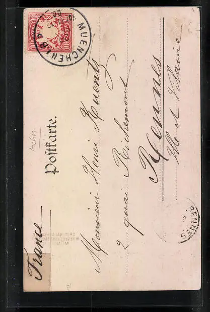alte Ansichtskarte, gelaufen 1900, reparierter Eckschaden re. unten, guter Zustand