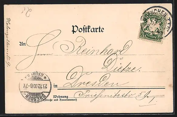 alte Ansichtskarte, gelaufen 1900, guter Zustand