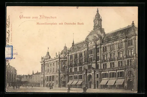 AK München, Maximiliansplatz mit der Deutschen Bank