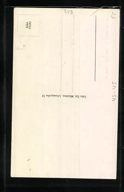 Personenbezogene Daten auf der Rückseite der Karte wurden durch blauen Textmarker unkenntlich gemacht. Die blauen Stellen sind auf die Vorderseite durchgeweicht und wirken sich negativ auf das Postkartenfoto aus