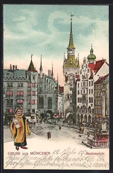 AK München, Münchner Kindl, Marienplatz
