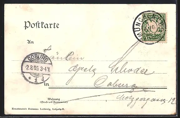 alte Ansichtskarte, gelaufen 1905, guter Zustand