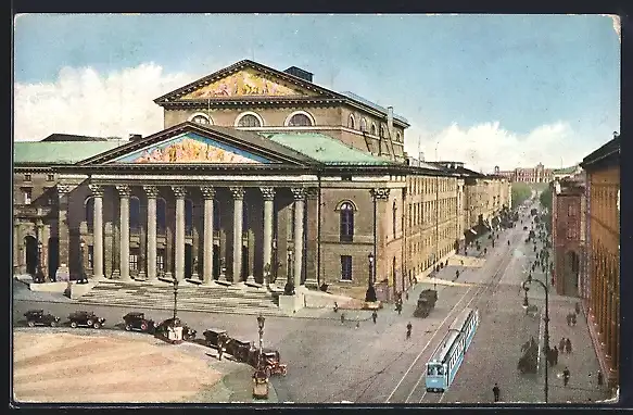 AK München, Nationaltheater mit Strassenbahn