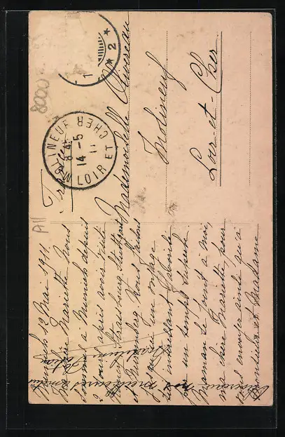 alte Ansichtskarte, gelaufen 1911, Briefmarke entfernt, rückseitig Oberflächenschaden, guter Zustand