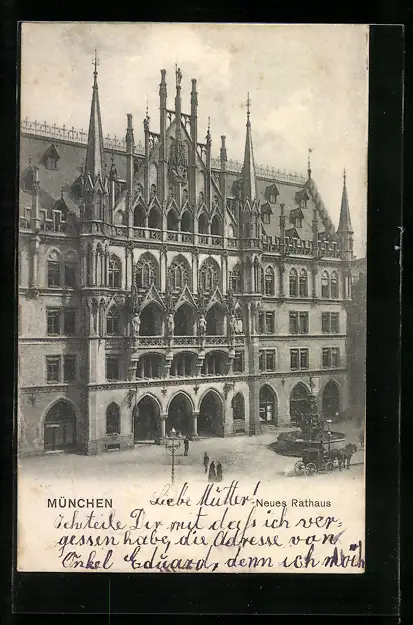 AK München, Neues Rathaus mit Vorplatz