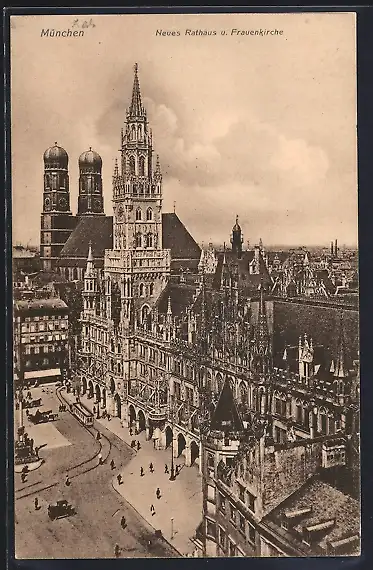 AK München, Neues Rathaus und Frauenkirche
