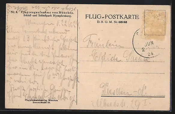 AK München-Nymphenburg, Stadtpark vom Flugzeug aus