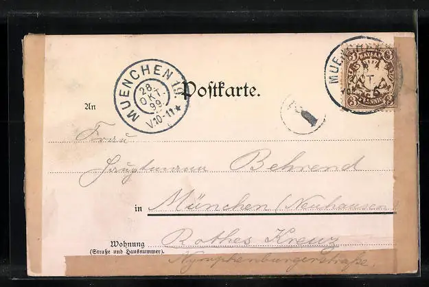 gelaufen 1899, rückseitig Klebe- und Papierreste, guter Zustand