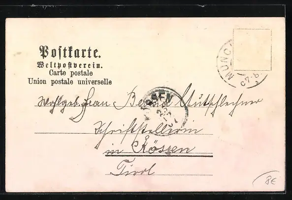 alte Ansichtskarte, gelaufen, Briefmarke entfernt, guter Zustand