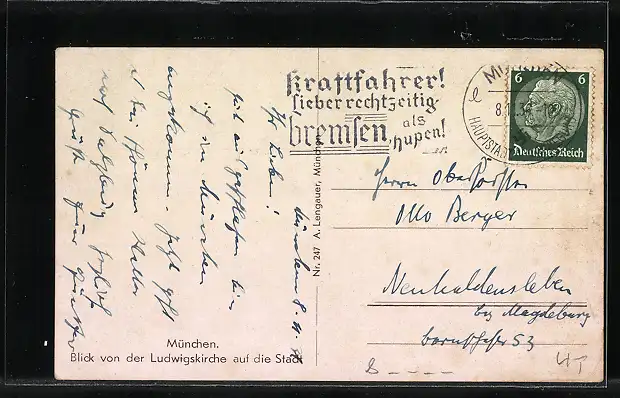 alte Ansichtskarte, gelaufen 1936, Eckknicke li., guter Zustand