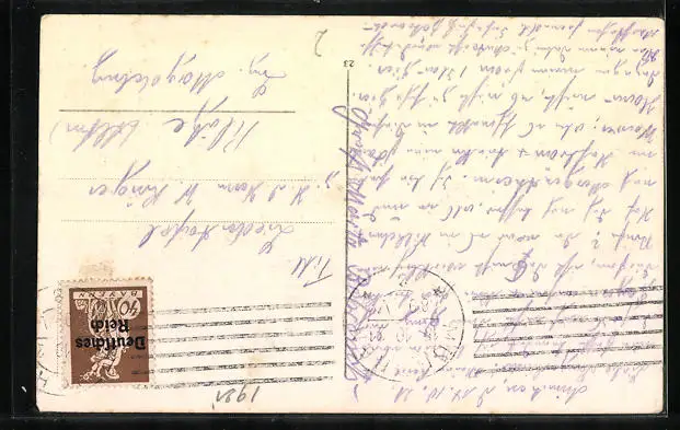 gelaufen 1921, Eckknick li. unten, sonst guter Zustand