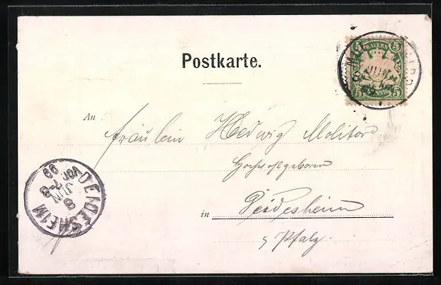 alte Ansichtskarte, gelaufen 1899, Eckknick li. unten, Bugspur re. oben, guter Zustand