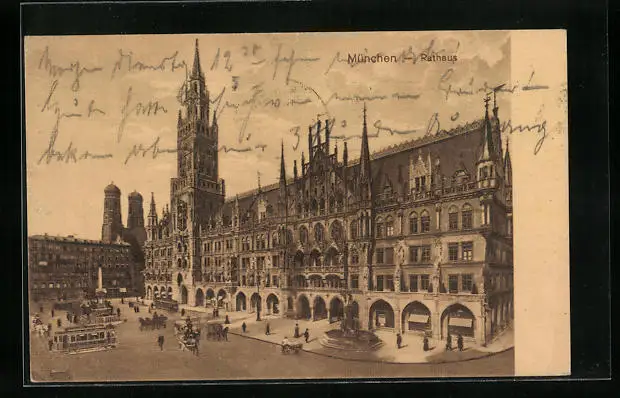AK München, Partie am Rathaus, Strassenbahn