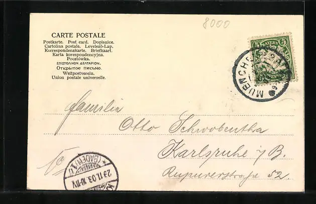 alte Ansichtskarte, gelaufen 1903, Stempelspur, guter Zustand