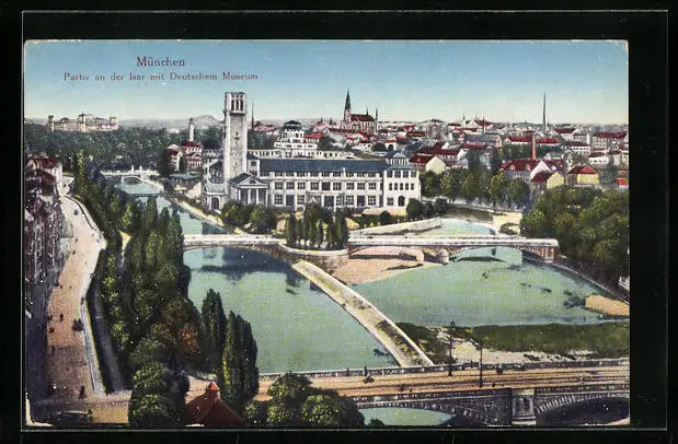 AK München, Partie an der Isar mit Deutschem Museum
