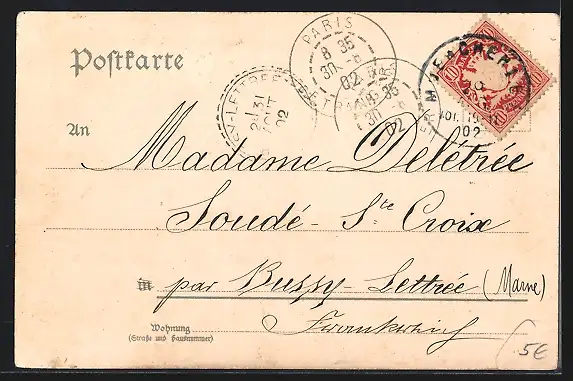 alte Ansichtskarte, gelaufen 1902, Eckknick re. unten, guter Zustand
