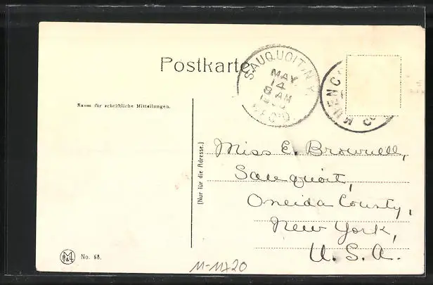 gelaufen, Briefmarke entfernt, Ecken bestoßen, sonst guter Zustand